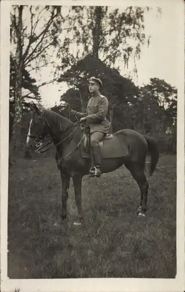 Foto Ak Deutscher Soldat in Uniform auf einem Pferd