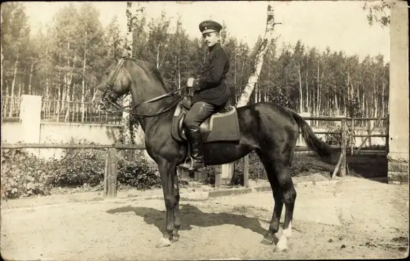 Foto Ak Deutscher Soldat in Uniform auf einem Pferd