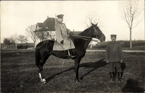 Foto Ak Deutscher Soldat in Uniform auf einem Pferd, I WK