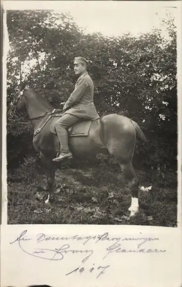 Foto Ak Deutscher Soldat in Uniform auf einem Pferd, I WK