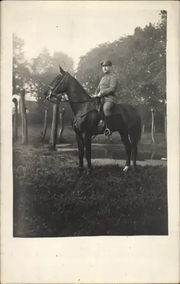 Foto Ak Deutscher Soldat in Uniform auf einem Pferd, Portrait