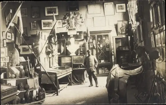 Foto Ak Deutscher Soldat in Uniform in einem Museum, I WK