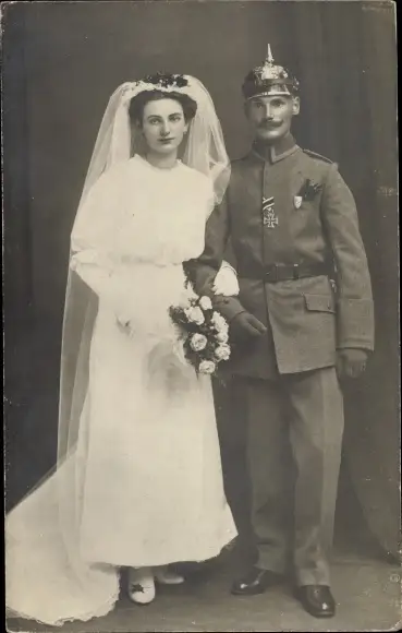 Foto Ak Deutscher Soldat in Uniform mit Braut, Hochzeit
