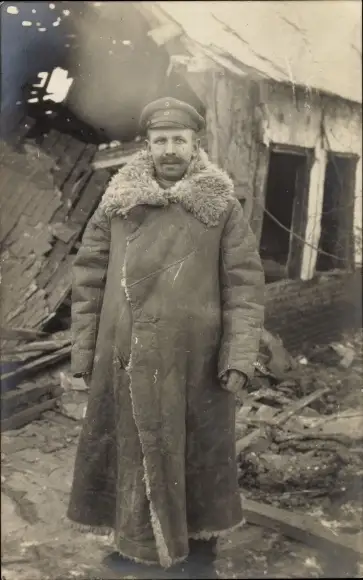Foto Ak Deutscher Soldat in Uniform mit Wintermantel, Portrait, I WK