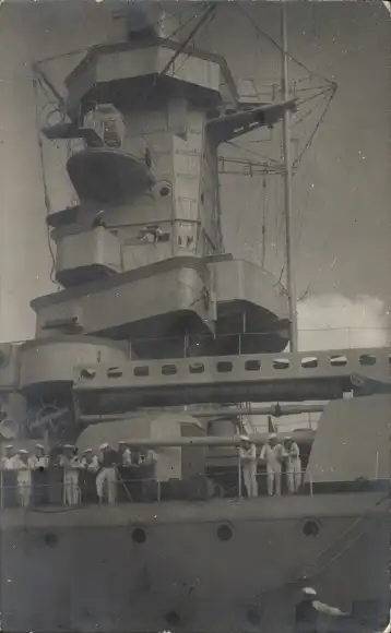 Foto Ak Deutsches Kriegsschiff, Gefechtsturm, Besatzung an Deck, Seeleute