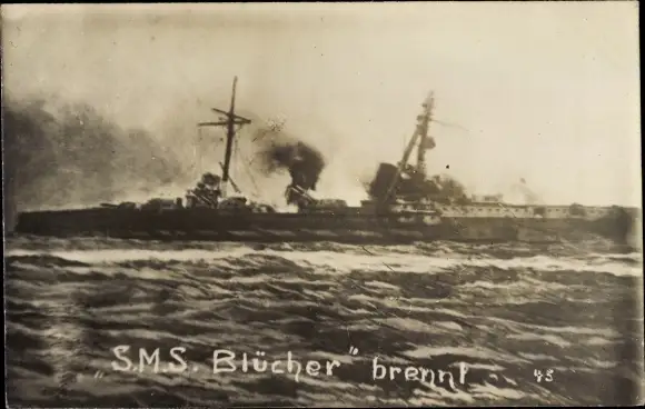 Foto Ak Deutsches Kriegsschiff, SMS Blücher, Großer Kreuzer, brennend