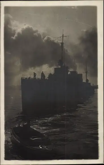 Foto Ak Deutsches Kriegsschiff und Motorboot