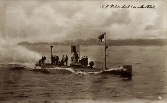 Foto Ak Deutsches U Boot, Unterseeboot 1, U 1, In voller Fahrt