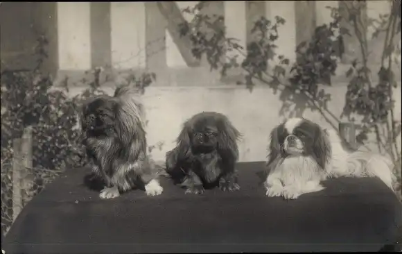 Foto Ak Drei Hunde, Pekingesen