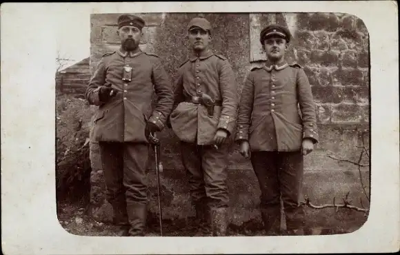 Foto Ak Drei deutsche Soldaten in Uniformen