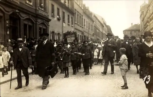 Foto Ak Dresden, Fest, Marschierende Menschen, Kinder in Uniformen