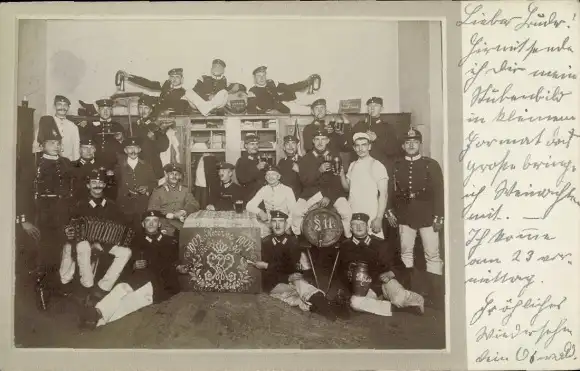 Foto Ak Dresden Neustadt, Deutsche Soldaten in Uniform in ihrer Stube, Gruppenbild