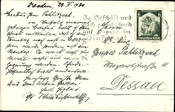 Zustand, siehe Scan, gelaufen, 1934 - ca 14 cm X 9 cm