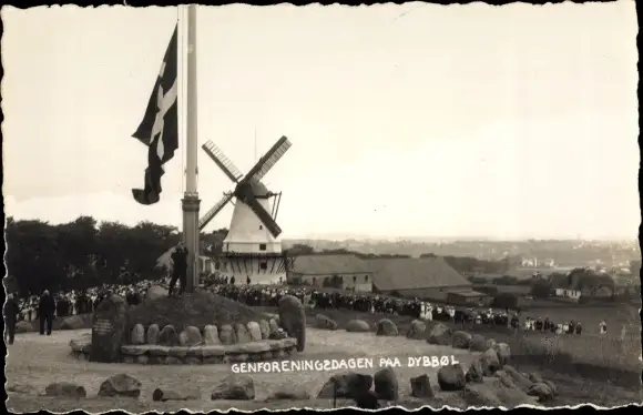 Foto Ak Dybbøl Sogn Düppel Dänemark, Genforeningsdagen, Windmühle, Denkmal