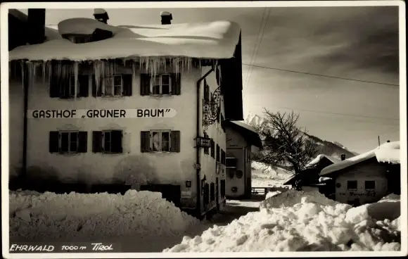Foto Ak Ehrwald in Tirol, Gasthof Grüner Baum, Winter