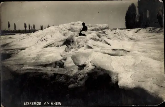 Foto Ak Eisberge am Rhein, Flusspartie, Mann