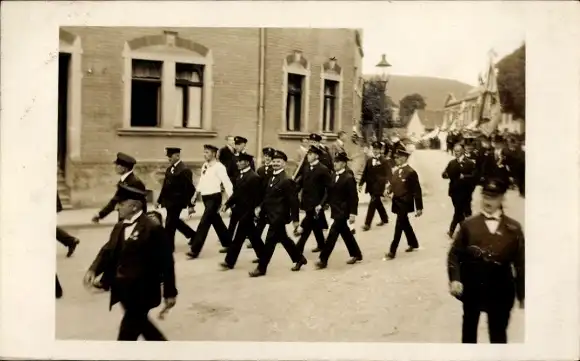 Foto Ak Elterlein im Erzgebirge, Männer bei einem Festmarsch