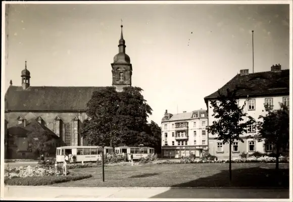 Ansichtskarte, Postkarte, Straßenbahn, Straßenbahnen, Tram, Kirche, Stadtkirche