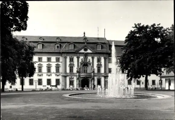 Foto Ak Erfurt in Thüringen, Regierungsgebäude, Springbrunnen, Autos