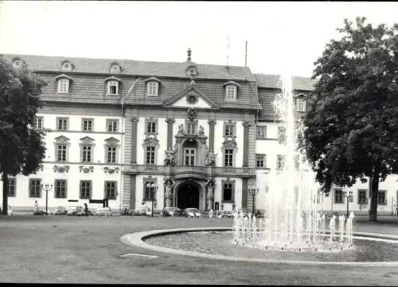 Foto Ak Erfurt in Thüringen, Regierungsgebäude, Springbrunnen, Autos