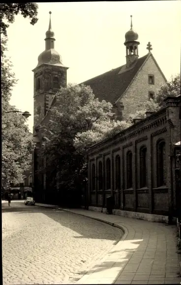 Foto Ak Erfurt in Thüringen, Straßenpartie mit Kirche