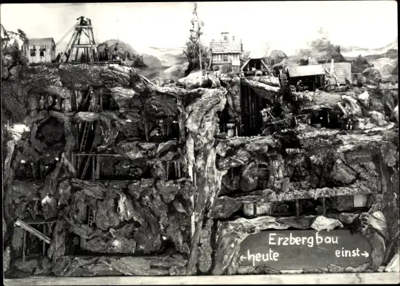 Foto Ak Erzgebirge, Modell Erzbergbau, heute und einst