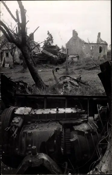 Foto Ak Estry Calvados, Zerstörungen am Ort