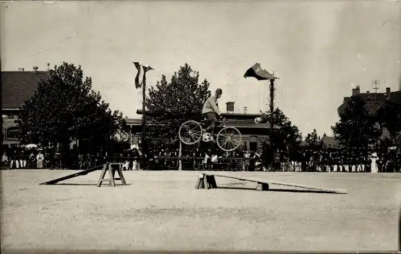Foto Ak Fahrradartist beim Sprung, Zuschauer