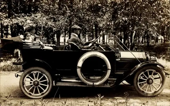 Foto Ak Familie in einem Automobil