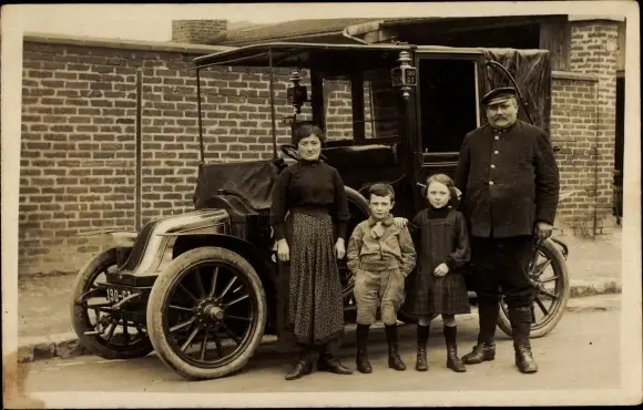 Foto Ak Familie vor einem Automobil