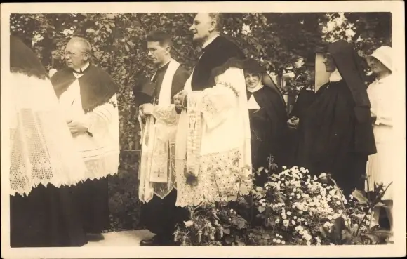 Foto Ak Feldmoching München Bayern, Primiz, Pfarrer Zintl, Nonnen