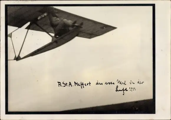 Foto Ak Fl. St. A. Meffert das erste Mal in der Luft, Flugzeug