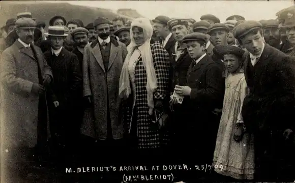 Foto Ak Flugpionier Bleriot, Landung in Dover 1909, Madame Bleriot, Zuschauer