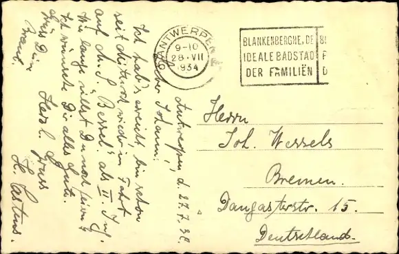 Zustand, siehe Scan, gelaufen, 1934 - ca 14 cm X 9 cm