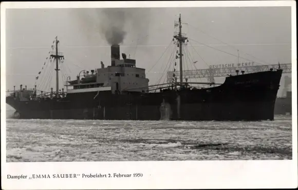 Foto Ak Frachtschiff Emma Sauber, Probefahrt 1950