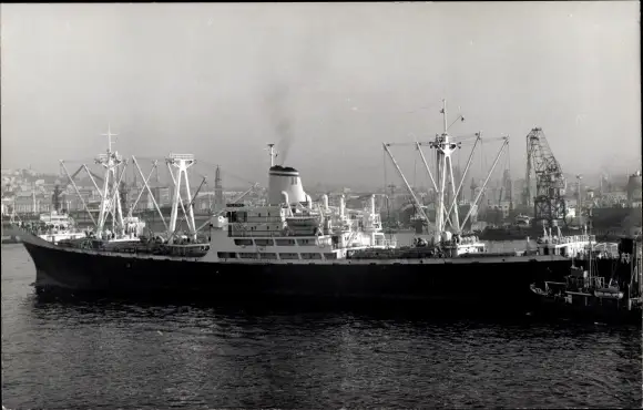 Foto Ak Frachtschiff in einem Hafen