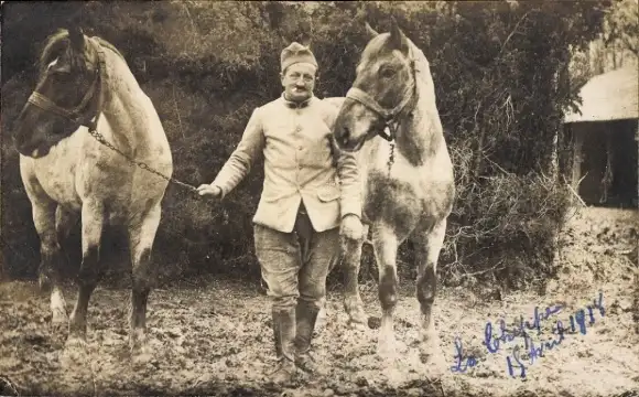 Foto Ak Französischer Soldat in Uniform, Pferde