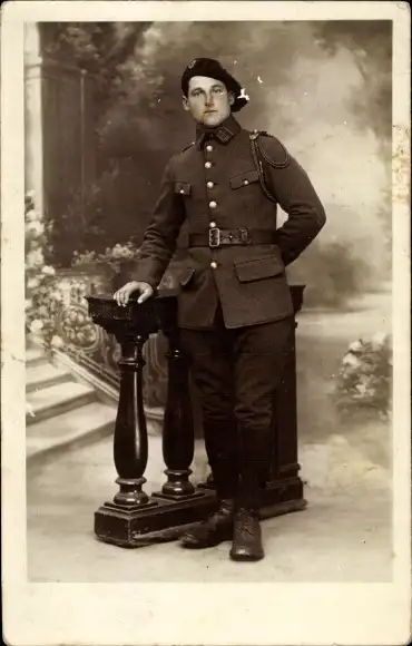 Foto Ak Französischer Soldat in Uniform, Schützenschnur
