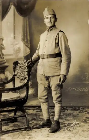 Foto Ak Französischer Soldat in Uniform, Standportrait