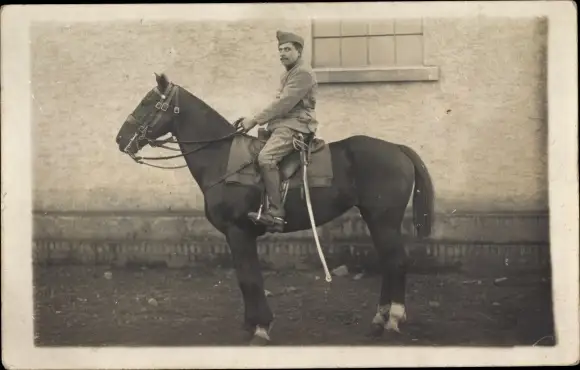 Foto Ak Französischer Soldat in Uniform auf einem Pferd