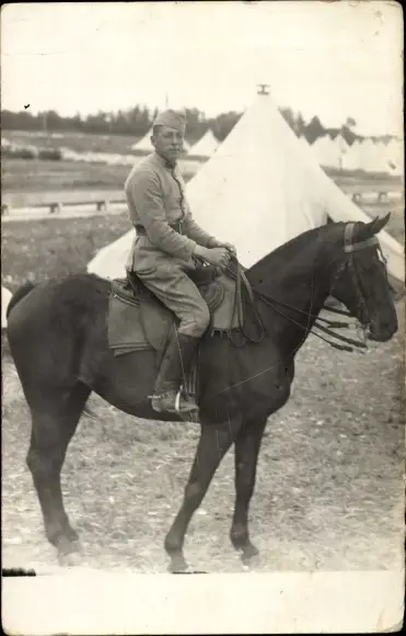 Foto Ak Französischer Soldat in Uniform auf einem Pferd, I WK