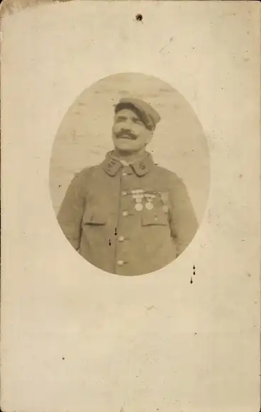 Foto Ak Französischer Soldat in Uniform mit Orden, Portrait