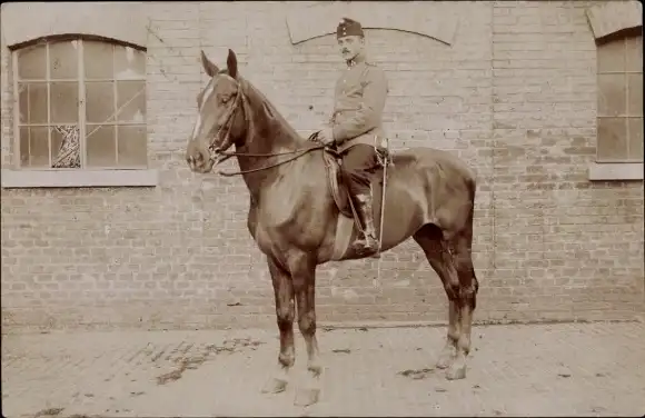 Foto Ak Französischer Soldat in Uniform zu Pferd, I WK