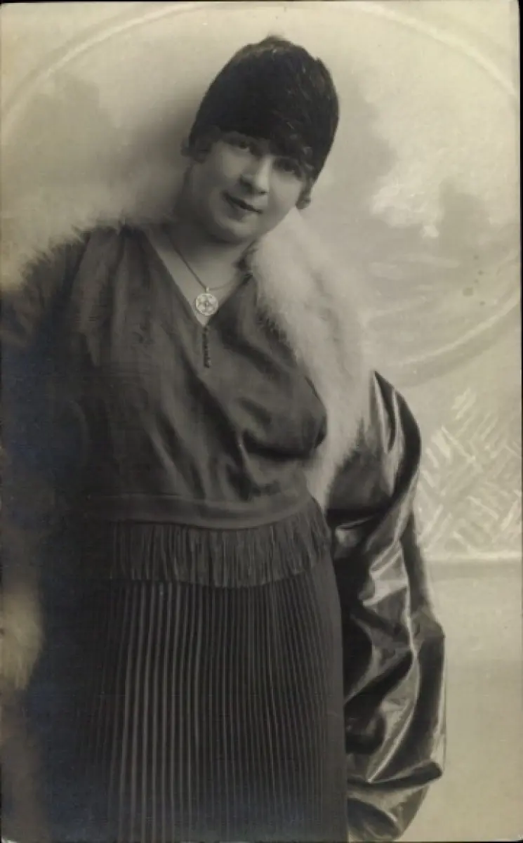 Foto Ak Frau-Porträt, Hut, Kleid