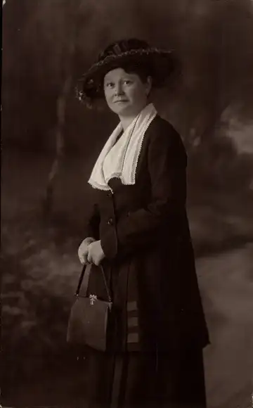 Foto Ak Frau-Portrait, Hut, Handtasche
