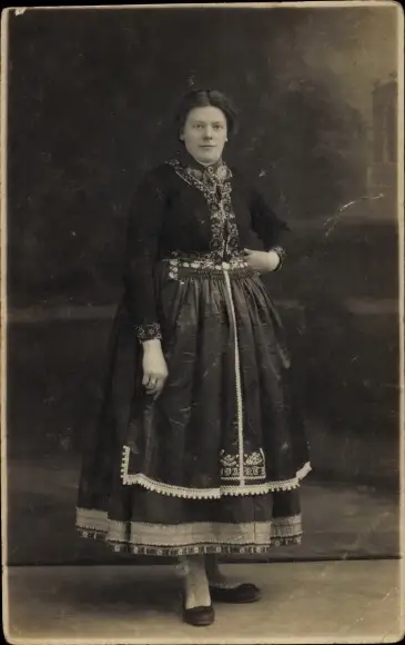 Foto Ak Frau in Volkstracht, Portrait, Schwarzes Kleid