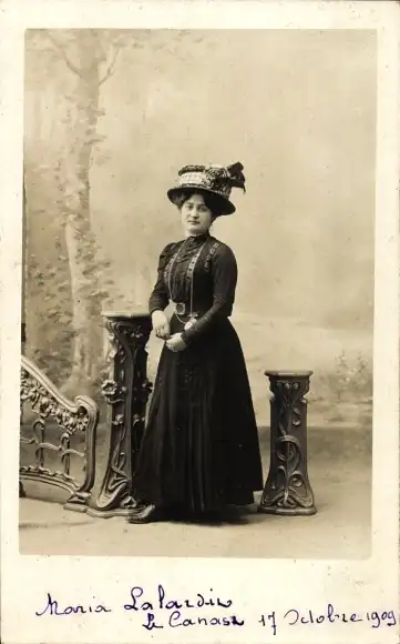 Foto Ak Frau in schwarzem Kleid, Porträt, Hut