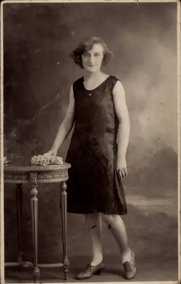 Foto Ak Frau in schwarzem Kleid, Portrait