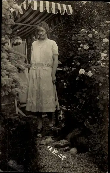 Foto Ak Frau in weißem Kleid, Garten, Rosen