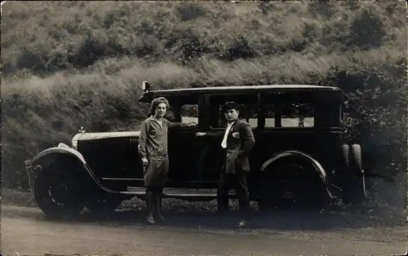 Foto Ak Frau und Mann vor einem Automobil, Portrait